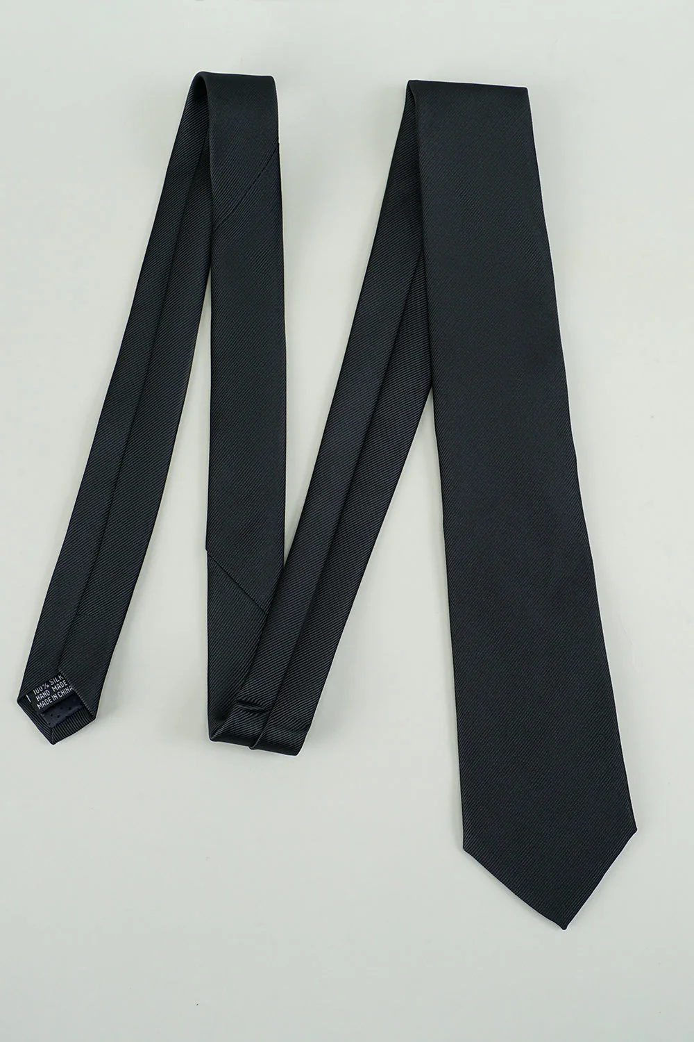 -70%Black Solid Satin Party Tie—
