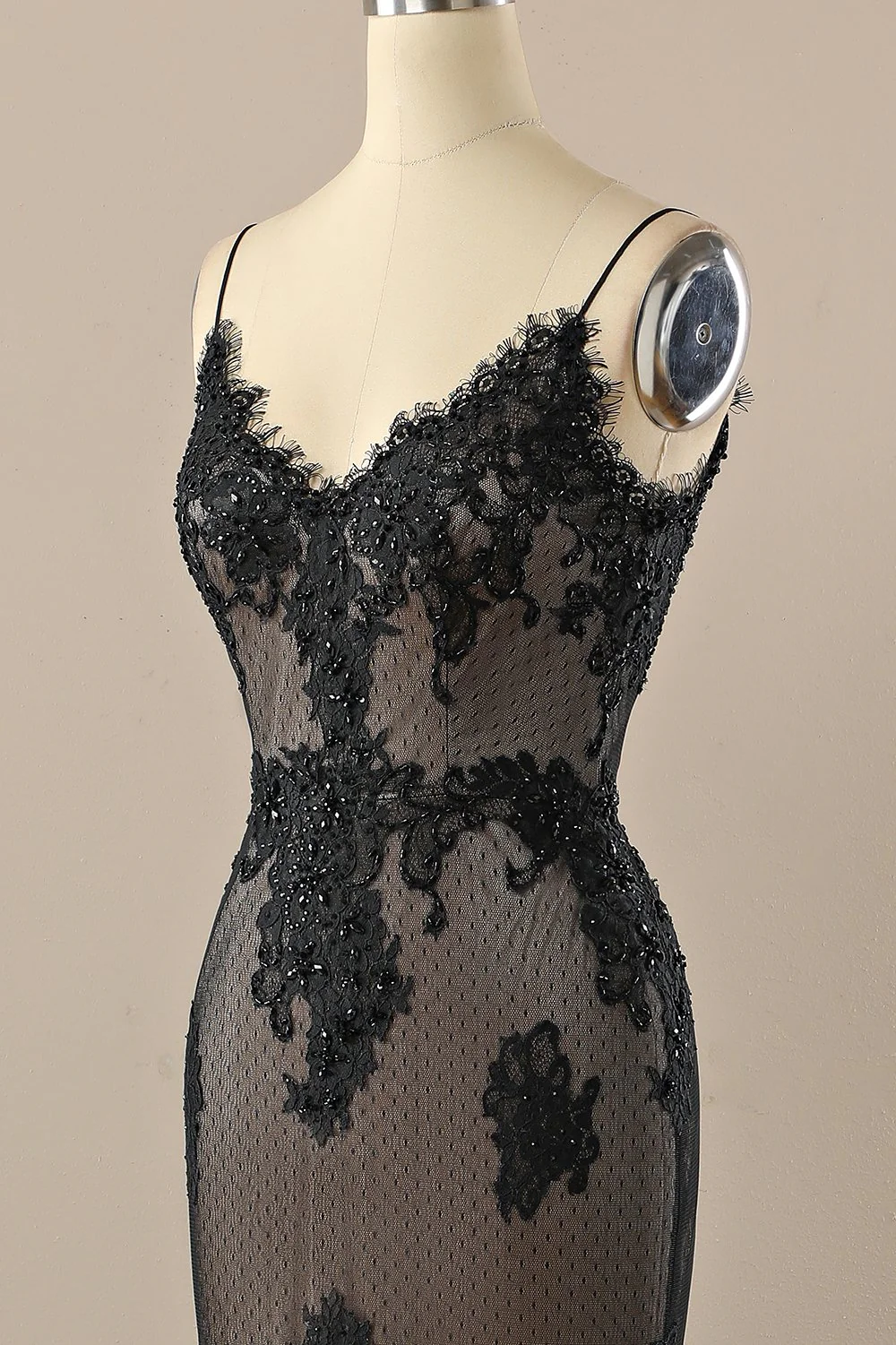 Black V neck Beaded Prom Dress