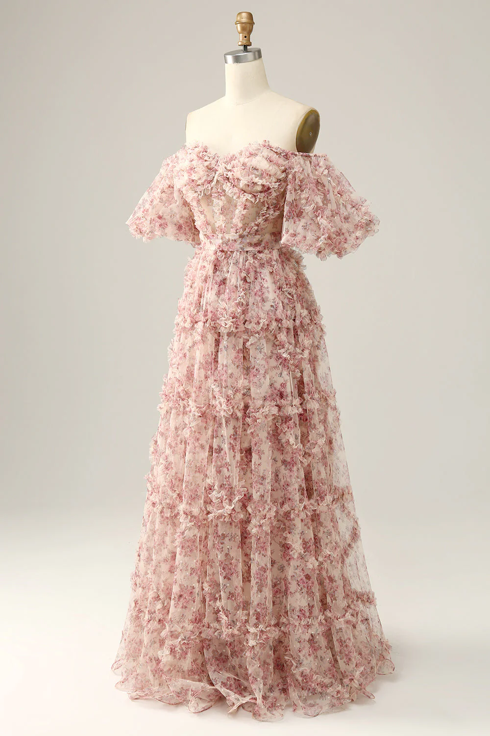 Ivory Red Flower Off The Shoulder Prom Dress